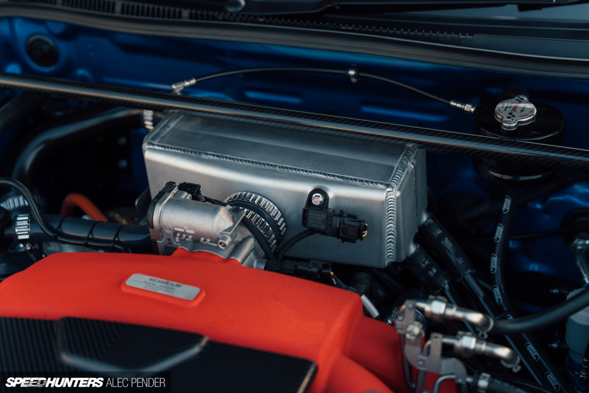 Based on the EJ25, a Prodrive-built motor is assembled. Each of these engines are hand built and stamped by Tony Hawtin, Colin McRae’s engineer in his WRC days. This includes the expected forged pistons, steel conrods and ported heads. On top of this, a Garret Turbo strapped to the side, paired with a front mounted intercooler, carbon intake and Akrapovic titanium exhaust.